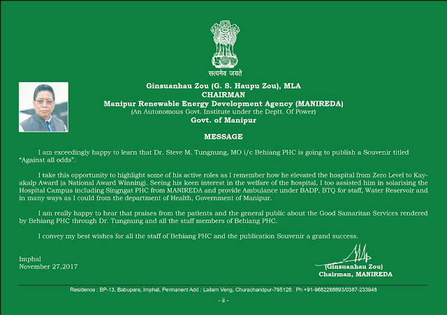 A PHC in a remote corner of Manipur, having won the coveted Kayakalp award for cleanliness, having bought motor-bike (with their own PHC fund) to take the nurses and their vaccine carriers to the ‘Hard to reach’ far-flung areas with a burning desire to deliver their right to immunization successfully to all the children; and now, coming up with a magazine! Series of surprises. A complex collection of achievements that no one will ever expect from Behiang PHC even in their wildest dreams. It’s all there for all to see. That’s against all odds.
